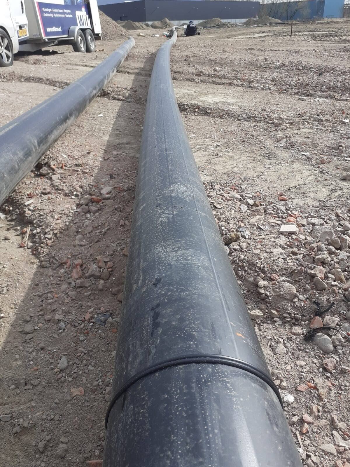 Op een fabrieksterrein in België hebben wij PE buizen geleverd en gelast ten behoeve van de blusleiding, mantelbuizen, waterleiding en riolering. De diameters variëren van 90mm tot 250mm.